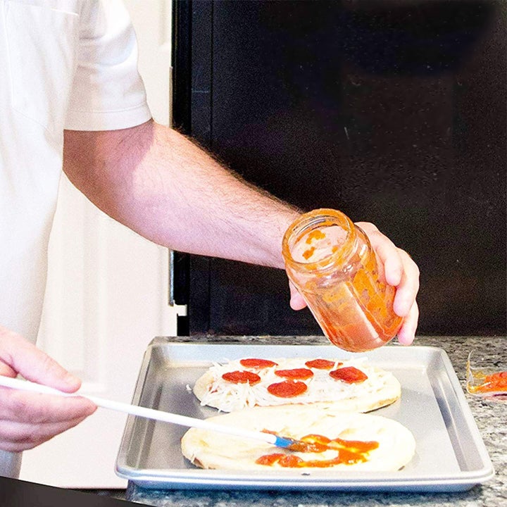 4. A set of mini spatulas that'll help you get the last bit of food out of the container. The flexible silicone head and long, narrow handle can fit into any jar or bottle. And when the containers are cleaned out, they're in the perfect condition to be recycled!