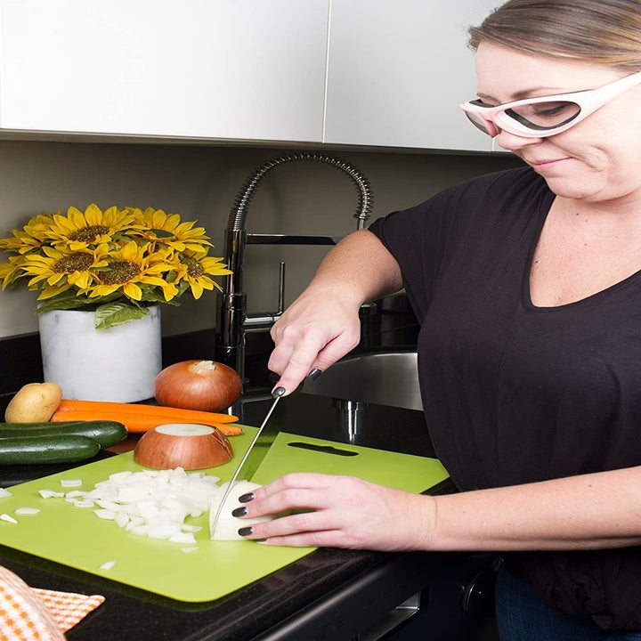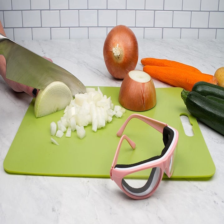 17. A pair of kitchen goggles that'll keep your eyes from watering while you're chopping onions. It's lined with foam to create a protective seal against your face, so the only tears you'll cry will be tears of joy.